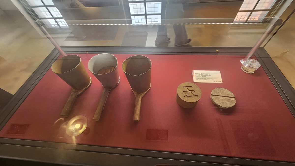 ご飯を入れる型(左)とその中に入れる板(右) 。板が薄いとご飯の量が多くなり、厚いと少なくなる。食事の量は罪質によって分けられた=イ・ジへ
